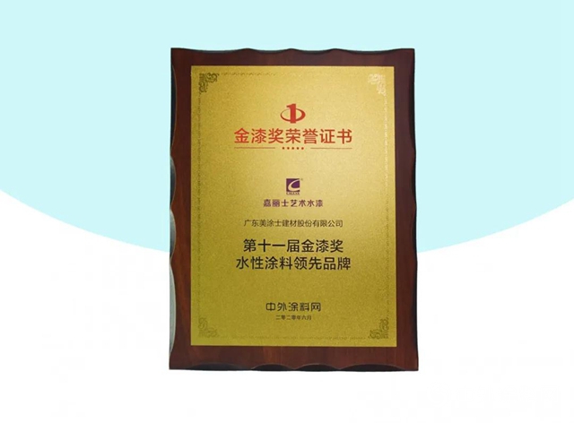 值得一提的是,在此次金漆奖颁奖典礼上,嘉丽士凭借出色的表现揽获“第十一届金漆奖水性涂料领先品牌”大奖。