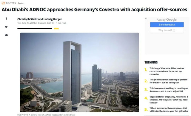 这家公司就是不久前向科思创提出收购要约的阿布扎比国家石油公司(ADNOC)。