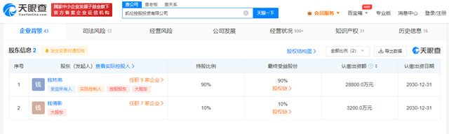 凯伦控股有两位股东,分别是钱林弟和他的女儿钱倩影。其中,钱林弟出资2.88亿元,占股90%,是公司的法人、实际控制人。钱倩影出资3200万元,占股10%。