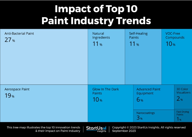 StartUS Insight认为,航空航天和汽车涂料越来越受欢迎,因为它们在高速行驶时具有更好的表面性能和耐久性。此外,天然成分、无挥发性有机化合物的添加剂和纳米涂料为传统涂料提供了更健康的替代品,并为家庭和环境提供了保护。此外,活性涂料(如自修复或自清洁涂料、高级工具和夜光涂料)为涂层表面提供了更高的美观性和功能性。