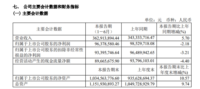 8月3日,上市刚刚一个月的键邦股份披露了首份2024年半年报。今年上半年,公司实现营业总收入3.63亿元,同比增长5.70%;归母净利润9637.86万元,同比下降2.18%;扣非净利润9339.57万元,同比下降3.21%;经营活动产生的现金流量净额为8966.57万元,同比下降4.40%;报告期内,键邦股份基本每股收益为0.8元,加权平均净资产收益率为9.78%。