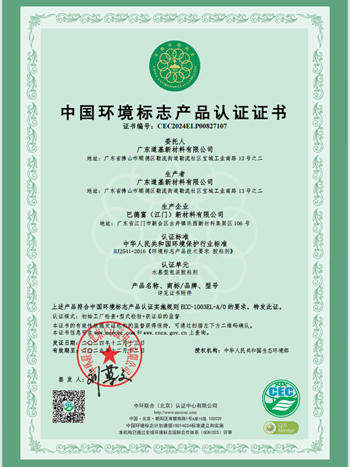 近日,巴德富集团生产的本体型建筑胶粘剂系列、水基型包装胶粘剂系列共14个产品顺利通过中环联合认证中心十环认证,获得“中国环境标志产品认证证书”。