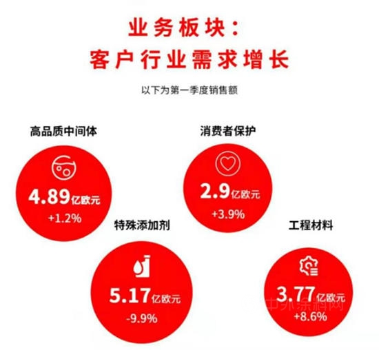 特殊添加剂业务领域第一季度销售额5.17亿欧元