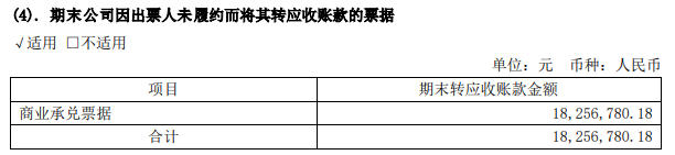 三棵树2021半年报数据显示,期末商业承兑票据金额为5.63亿元,因出票人未履约而将其转应收账款的票据为1825.68万元。