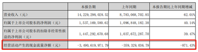 据东方雨虹披露的2021年年中报显示,公司上半年实现营业收入142.29亿元,同比上涨62.01%;净利润15.37亿元,同比增长40.14%。经营活动产生的现金流量净额-34.9亿元,同比大降871.43%。东方雨虹表示,主要系报告期原材料价格大幅上涨导致当期采购支出增加。