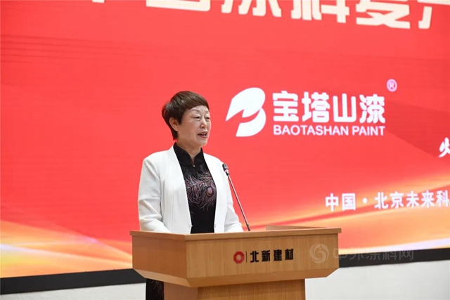 李斌作为联盟企业代表发言。他代表宝塔山和西部地区涂料企业感谢中国涂料工业协会和北新建材为涂料行业提供了一个交流学习、合作共享的组织。宝塔山也将为中国涂料的复兴和中华民族的伟大复兴贡献自己的力量。