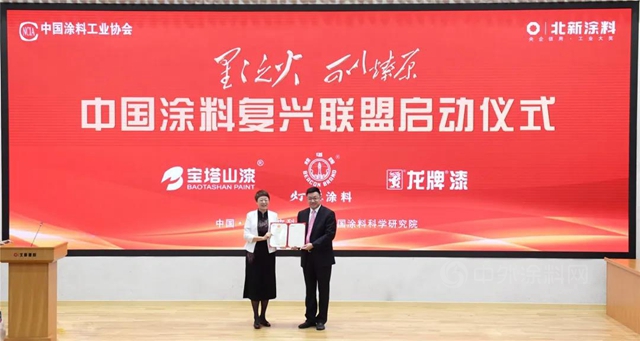 中国涂料复兴联盟由中国涂料工业协会牵头发起成立,北新涂料为骨干成员单位,宝塔山、灯塔涂料、龙牌涂料为首批联盟启动成员单位,中国涂料工业协会孙莲英会长担任联盟主席。联盟的成立旨在凝聚涂料行业优秀企业和高等院校科研院所力量,推动中国涂料行业科技创新解决卡脖子工程、推动中国自主涂料品牌自信和产业复兴,为中华民族的伟大复兴做出积极贡献。