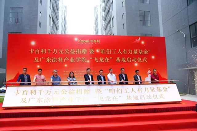 中外涂料网注意到,2023年3月12日,卡百利千万元公益捐赠暨“咱们工人有力量基金”和广东涂料产业学院“飞龙在”基地启动仪式举行。特别设立的“咱们工人有力量基金”,主要用于培养退役军人、大学毕业生及社会人士成为掌握一技之长的“装艺师”。广东涂料产业学院“飞龙在”基地,针对涂装市场对涂装施工人才的需求紧缺,推进产业化培养高素质涂料涂装人才,希望更多的退役军人和大学生在这里“飞龙在天”。
