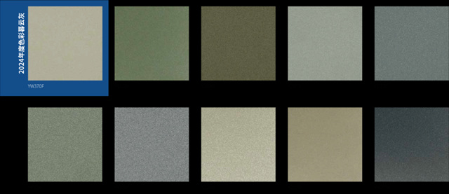 基于此背景下,我们以甜蜜相拥为主题,选择了细腻柔和,带着一丝紫罗兰色调,泛着微妙金属效果的灰色“暮云灰”(色号YW370F)作为2024粉末涂料年度色彩,这款颜色能够为我们带来温暖舒适的感觉,为我们的生活和工作空间营造出一种安宁亲和的氛围。