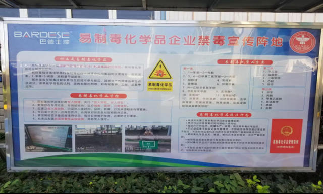 2023年11月4日,四川巴德士新材料有限公司完成易制毒化学品企业禁毒宣传栏海报的制作张贴,让员工随时可以学习了解公司存在的易制毒化学品知识及毒品相关知识,营造良好的禁毒宣传文化氛围。