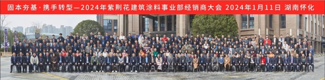1月11日,2024年紫荆花建筑涂料事业部经销商签约会议在湖南怀化圆满召开。本次大会以“固本夯基 携手转型”为主题,旨在推进营销升级和终端转型之道,溯服务之根本,帮助经销商顺应市场变革,提升服务质量,创新营销模式,共同开启2024“荆”彩新篇章。