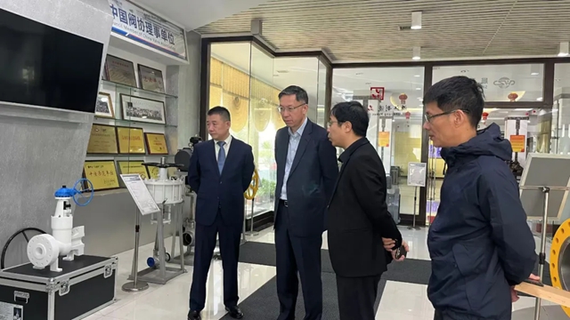 (上图)紫荆花新材料集团联席总裁冯秉光先生参观五洲阀门股份有限公司展厅