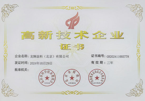 近日,北新涂料所属龙牌涂料(北京)有限公司、天津灯塔涂料工业发展有限公司再次获得国家高新技术企业认定,以科技创新实力持续推动企业高质量发展。