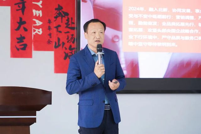 地坪材料副总经理杨建柱在会上作“砺锋·精进”主题报告,分析2024年宏观微观环境,指出上半年经济趋好但变化多,下半年在政策推动下出现积极势头。嘉宝莉地坪材料在行业压力下完成年度目标,转型成效显著。杨总回顾2024年经营情况,明确2025年销售、市场推广、研发、团队建设等重点工作,部署聚焦风口市场、推广重点产品、开辟海外市场等任务,为未来发展奠定基础。