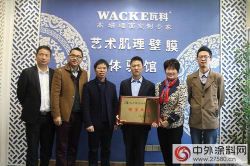 瓦科涂料始创于2012年,是中科建涂旗下5家子公司之一,公司主要专业研发、生产、销售艺术肌理壁膜、防水涂料、内外墙建筑涂料等产品。近年来,瓦科涂料积极参与协会工作,与协会成员积极开展技术和行业交流,致力于建立并完善艺术涂料行业标准,提高行业整体能力,为消费者提供更高层次的产品和服务。鉴于瓦科涂料近年来的突出表现,吕水列秘书长代表协会秘书处向瓦科涂料授予第八届理事会理事单位荣誉牌匾。