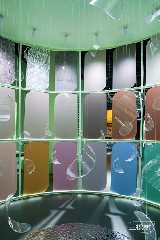 三棵树小森板展馆通过极简叶型线条与生态色系,构建出未来感与自然感交融的家居新生态,以“东方美学+漆艺技术”打造沉浸式体验空间,成为展会焦点,开展首日便吸引数千名行业专业人士与消费者目光。其中,核心筒区域的“水瀑装置”采用动态光影与冰透流苏叶片效果,模拟水瀑流动的光线变化,配合360°板材环绕展示装置,让观众瞬间置身清新生动的自然场景。
