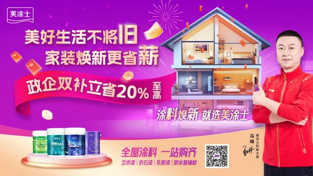美好生活不讲旧,家装焕新更省薪!春季焕新家,涂料就选美涂士,政企双补立省至高20%,助力全屋涂料一站购齐,美涂士焕新活动已在全国终端火热进行中,有需求的用户可到全国美涂士终端门店进行咨询!