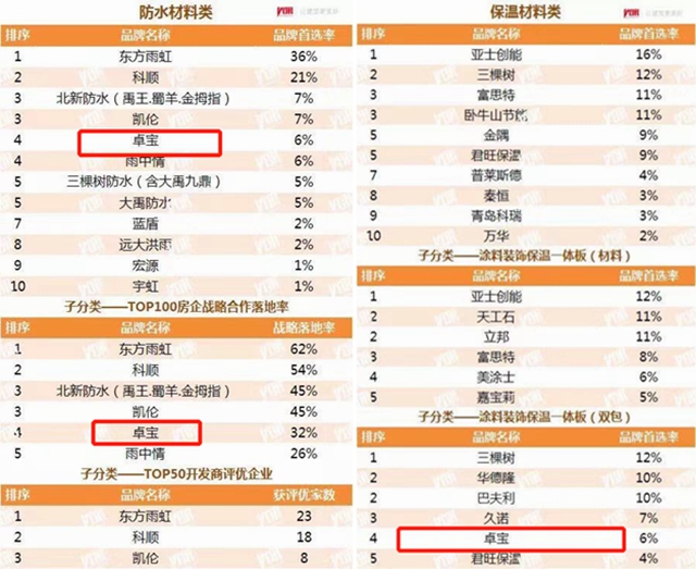 卓宝此次获得2项大奖,不仅代表客户对于卓宝优质产品与服务的认可与支持,也是对卓宝未来发展的期望与看好。同时,卓宝科技已连续十年入围“500强房企首选供应商品牌·防水材料类”10强榜单!连续三年入围“涂料装饰保温一体板”榜单。