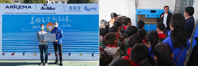 2020年11月,阿科玛正式加入壹基金 “净水计划”公益项目, 支持“净水计划”项目逐步落地云南省的10所乡村学校,为孩子们带去干净的水,助力他们的健康成长。阿科玛及旗下特种表面活性剂领导者阿科玛-阿麦仔投入40万元人民币,为每所学校安装一台净水设备,为孩子们配备儿童安全水杯并开展水与卫生健康培训。项目预计于2021年底全部完成,每年约4,000名学生将从中受益。