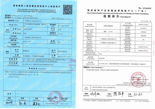 * 图片:集泰水性内外墙无机涂料相关检测报告