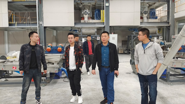 在董事长特助张小建和南召公司销售总监李永吉的陪同下,潘总一行兴致勃勃的观摩了新上的母粒生产线和球磨生产线,了解产品生产、质检、包装等工艺流程和研发实力,交流探讨原矿品位和色相。