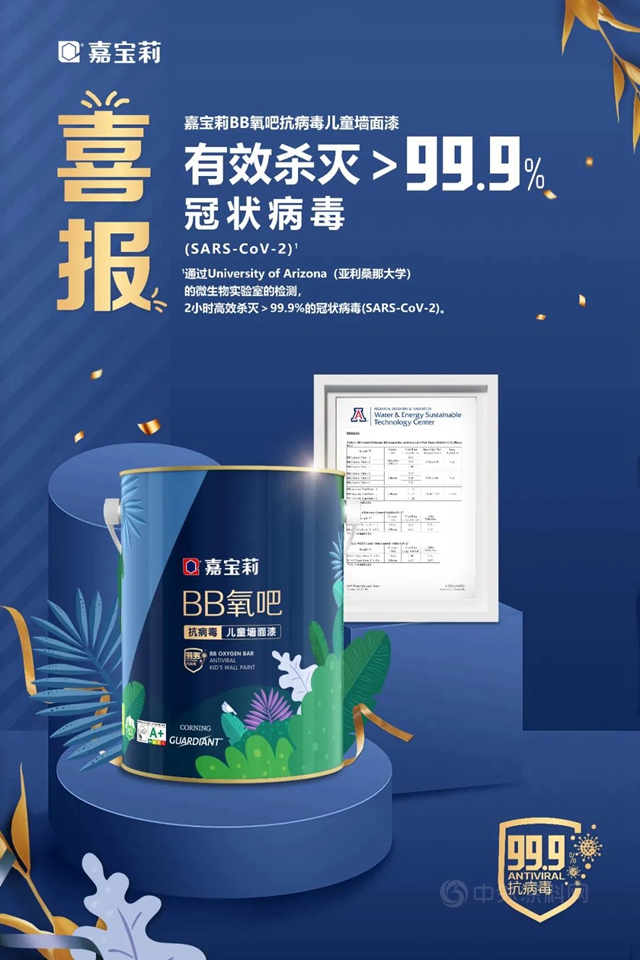 在产品上,嘉宝莉成功推出的海藻泥3代、BB氧吧抗病毒儿童墙面漆、维洛娅系列艺术涂料等多项环保新产品。尤其在儿童漆领域,嘉宝莉在2015年主导制定的《儿童房装饰用水性木器涂料》国家标准,消除了国内儿童涂料产品没有统一标准的现状,让儿童家具的安全环保从此有了保障。在疫情下的2020年,嘉宝莉推出采用了创新Corning Guardiant技术的产品——BB氧吧抗病毒儿童墙面漆,为消费者的健康保驾护航。
