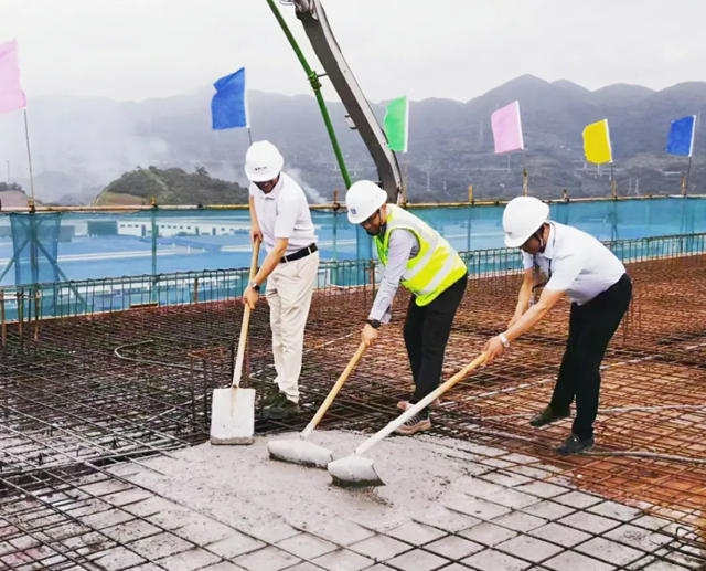 仲夏多雨的重庆,迎来久违的晴天。伴着阵阵微风,蒋总、周总等一行人登上楼顶,在绚烂的烟花下,与工人们一起挥舞铁铲,共同宣布封顶大吉。亚士创能西南综合智能制造基地一号科研楼封顶仪式圆满礼成。