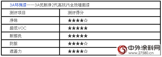 测评产品:3A优耐净2代高抗污全效墙面漆