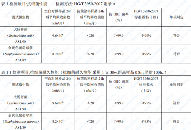 以下为展辰新材经典品牌洋甘菊0级防霉抗菌内墙漆在广东微生物分析检测中心关于抗细菌性能及抗霉菌性能两项检验项目的检验报告,所检项目的检测结果符合HG/T3950-2007抗菌涂料中I级产品的技术要求。