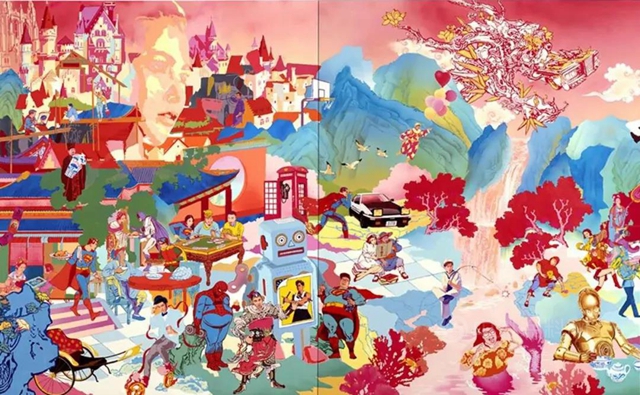 “生活·范特西”的创作主题涉及绘画、雕塑、漆雕、彩瓷等多种艺术媒介,在东西文化元素的“拼贴”上,玩得妙趣横生。Jacky Tsai通过将东方美学传统意象、自然环境等元素与波普艺术融合,以跨地域的视角聚焦不同文化的碰撞与交流。