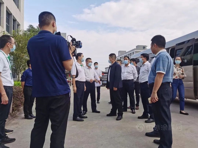 在胡总的陪同下,考察团领导参观了三棵树·大禹九鼎科技展厅及厂区,并热切的沟通了公司良好的经营情况、公司产品研发及新材料应用的情况、以及清远基地二期扩建项目进展情况。
