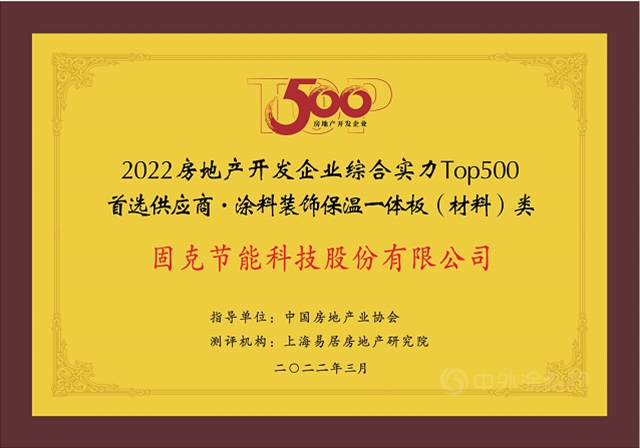 测评报告显示,固克节能科技股份有限公司荣获“中国房地产开发企业TOP500首选供应商品牌”荣誉称号,连续十年蝉联TOP500首选品牌榜单,此次成功斩获四项大奖!