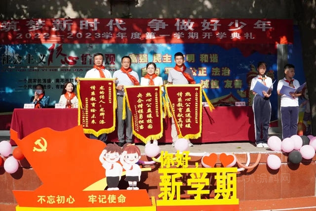 金秋送爽,丹桂飘香。9月1日,北新建材及旗下两家企业北新涂料有限公司、上海北新月皇新材料集团有限公司相关代表受邀参加北京市朝阳实验小学博约分校开学典礼。在典礼上,学校校长孙文纪同志向3家公司赠送锦旗,感谢北新建材对学校进行的公益捐赠与环境改造,向北新建材对学校发展给予的关心与支持表达肯定与赞扬。