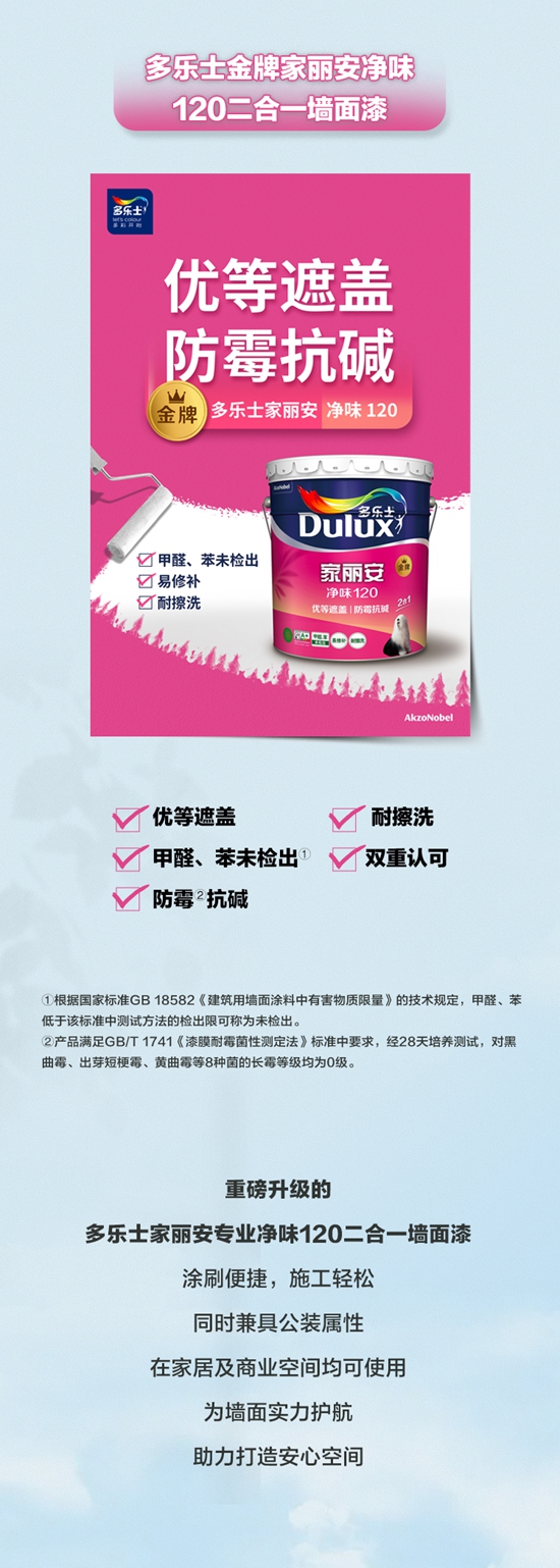 多乐士家丽安专业净味120二合一乳胶漆,空间理想优选